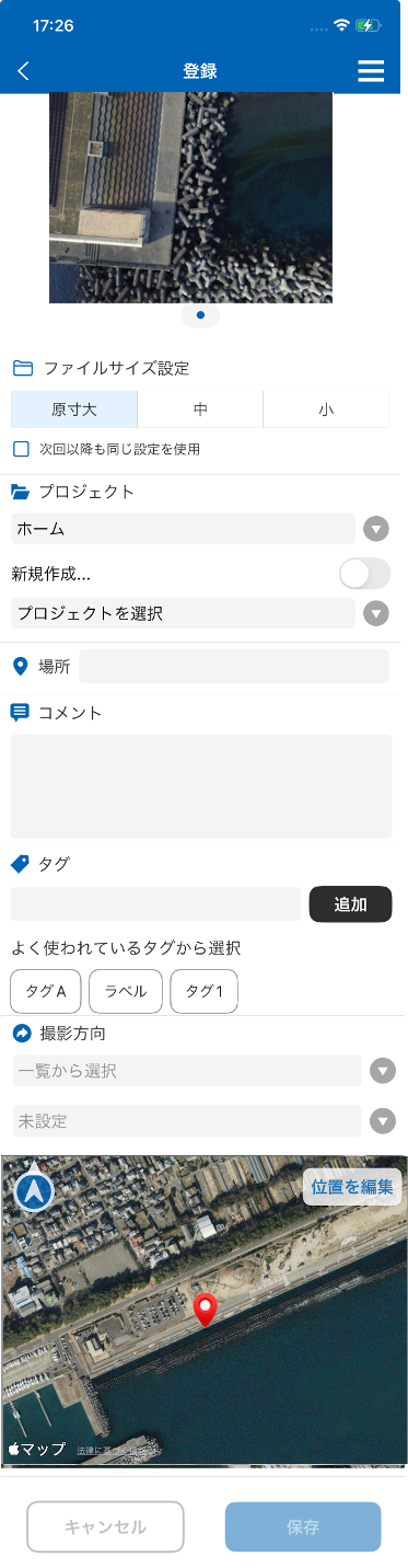 *写真・動画をアップロードする場合、「位置情報未設定」と表示されるデータは登録が出来ません。