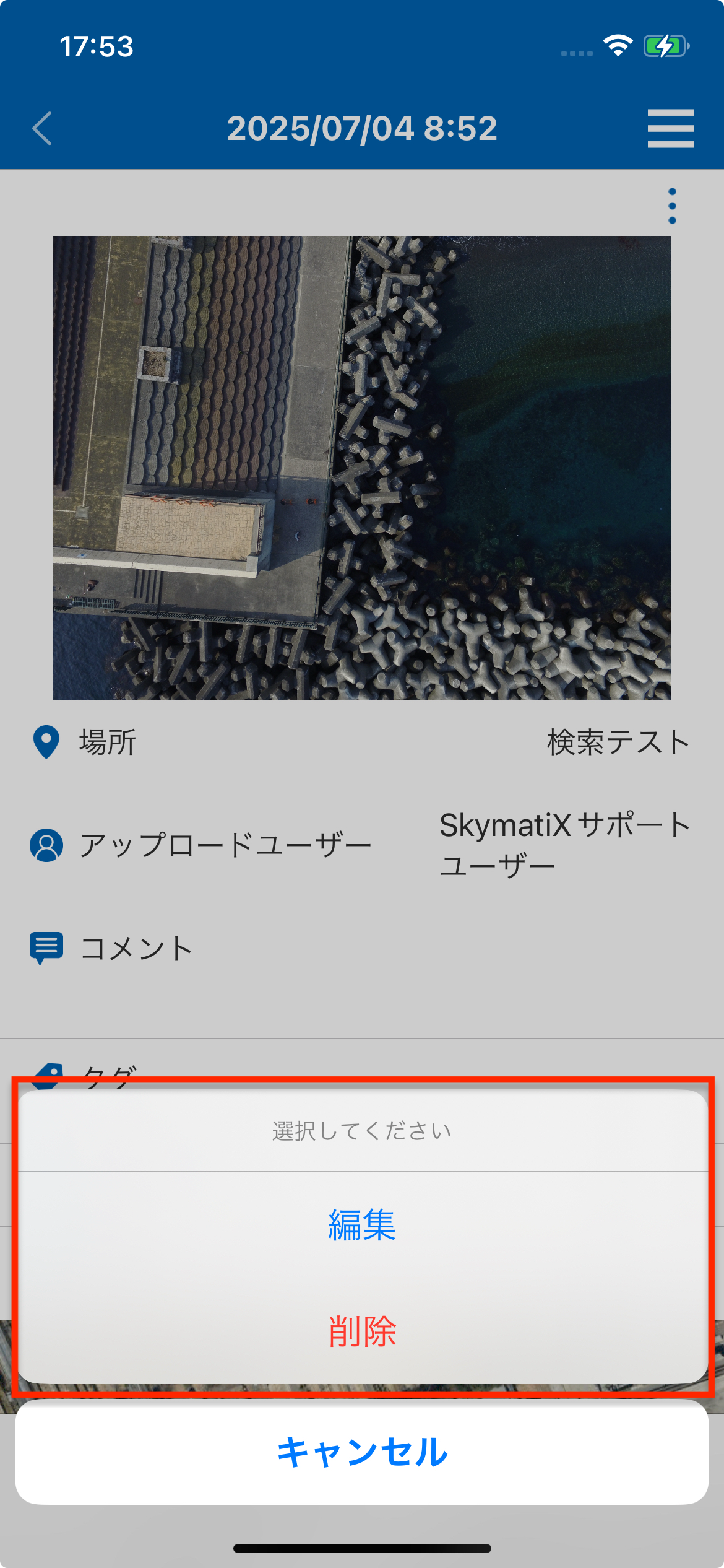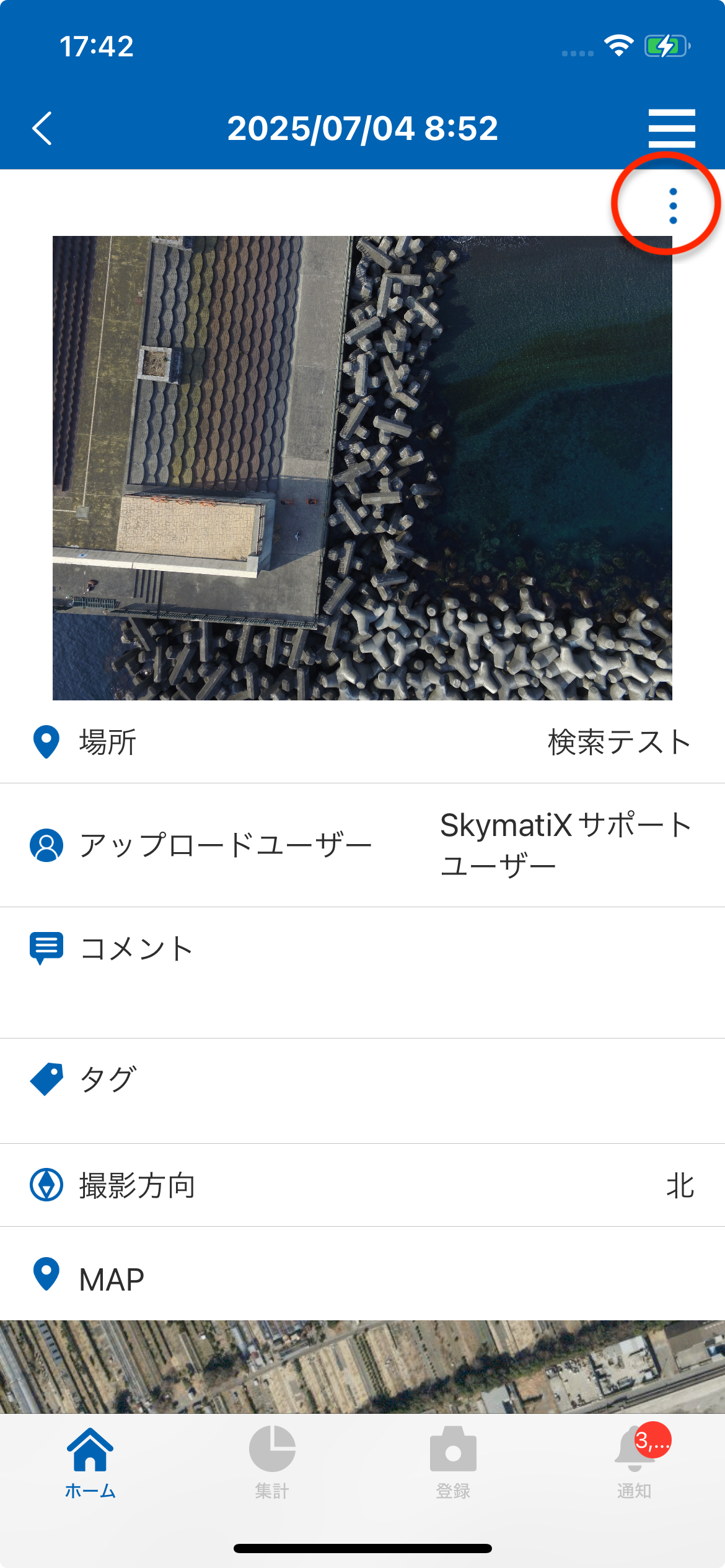 「︙」より詳細情報の編集、写真・動画の削除が行えます。
