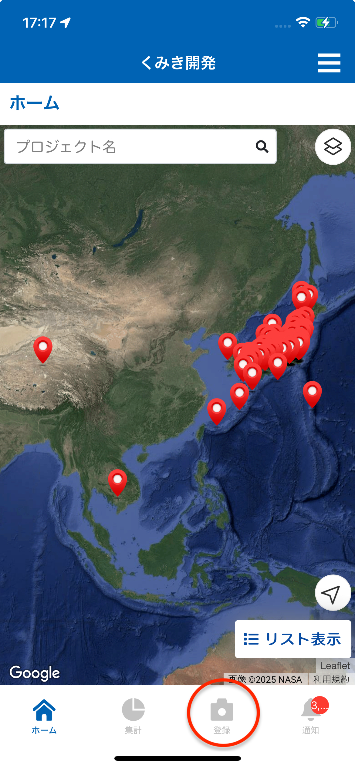3)アプリ画面下部のメニューバーより「登録」をタップしてください。