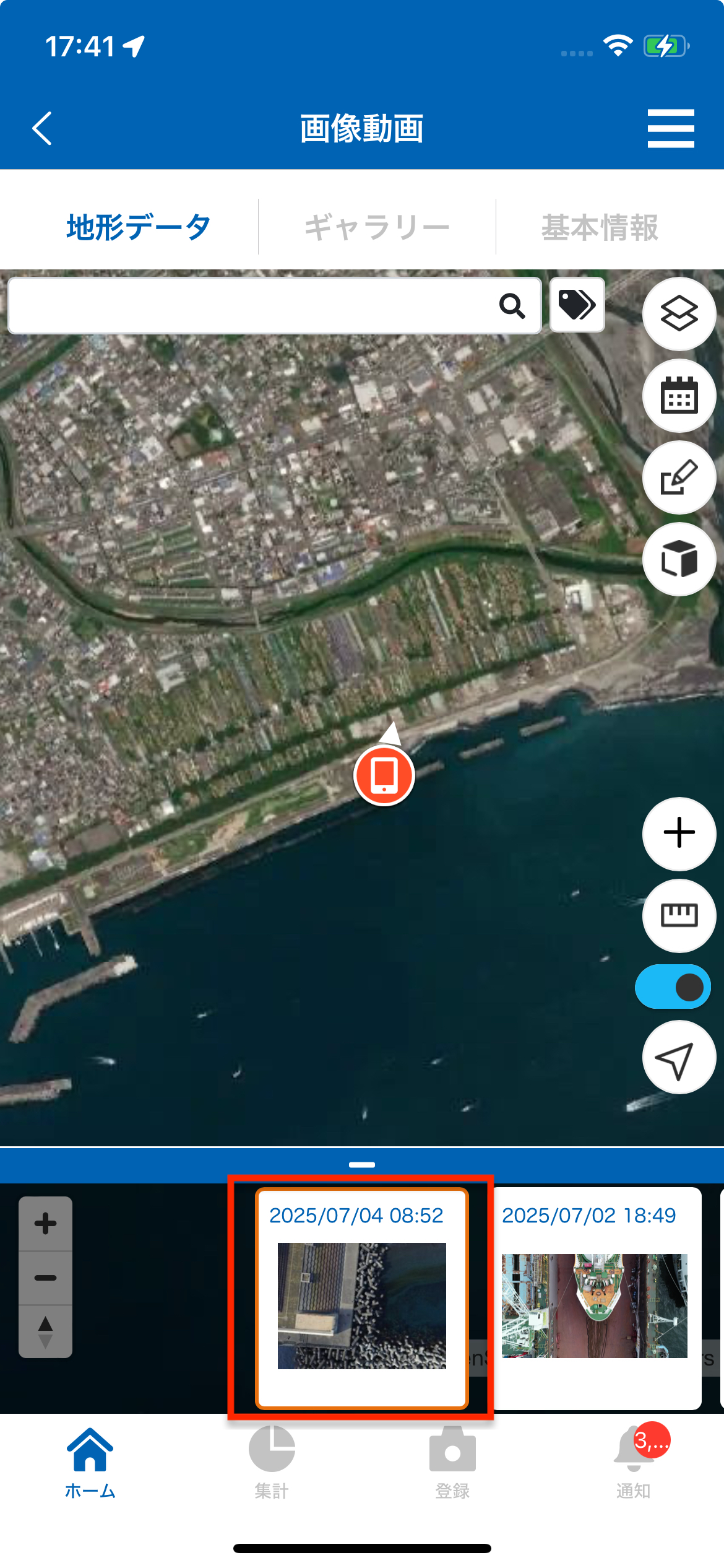 8)一覧より写真・動画をタップすると、詳細画面が表示されます。