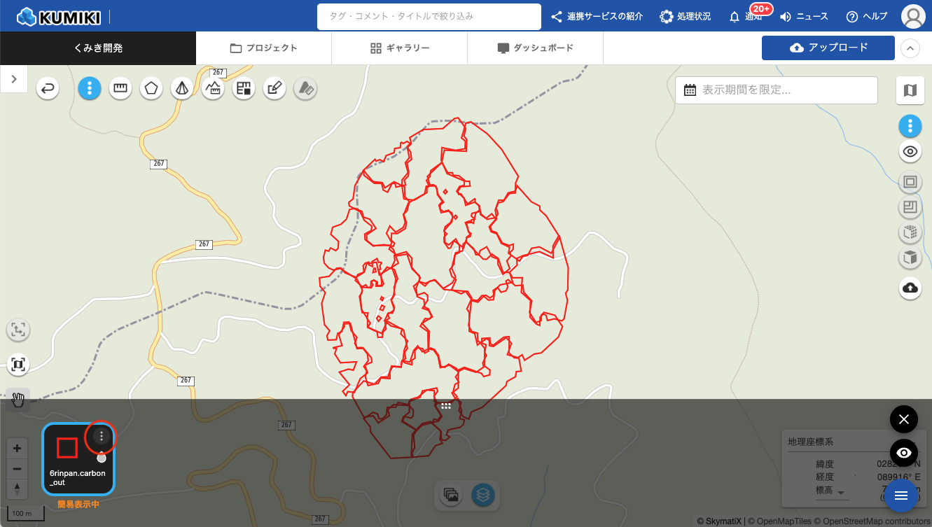 - 色分けを設定したいベクターレイヤのカード右上にある「︙」アイコンをクリックします。