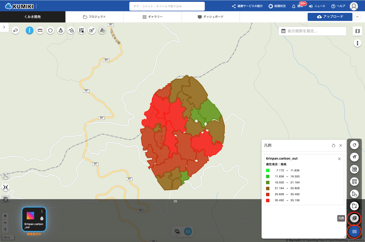 - 凡例には、選択した属性項目名、各区分の色と数値範囲が表示されます。