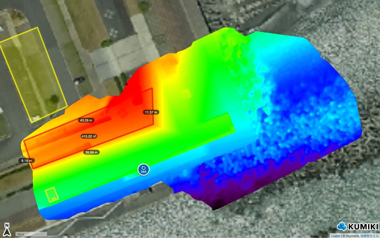 表示されている計測結果、範囲指定DSM、ドローン画像・動画、スマホ画像・動画、テクスチャ・パノラマ(*1)、現場管理(*2)もキャプチャされます。