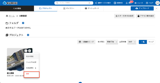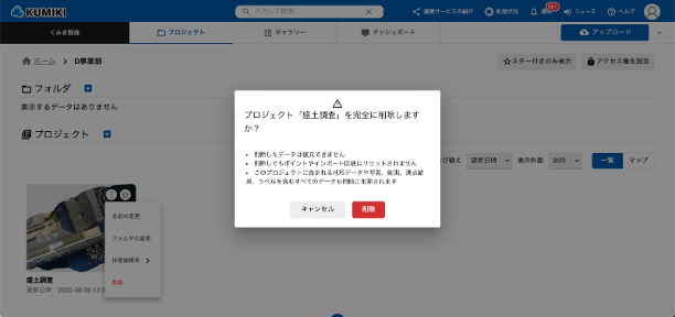 1.プロジェクトより、削除したいプロジェクトの右上「︙」を開いて「削除」をクリックします。