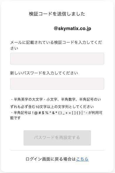 ご登録のメールアドレス宛に検証コードが送信されます。