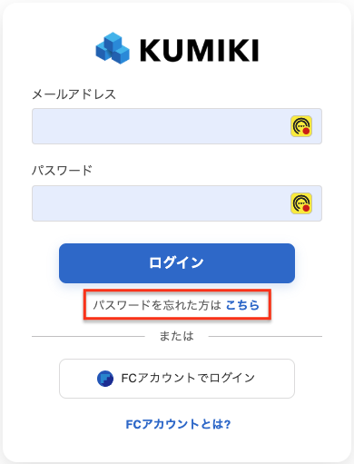1.ログイン画面の「パスワードを忘れた方はこちら」をクリックします。
