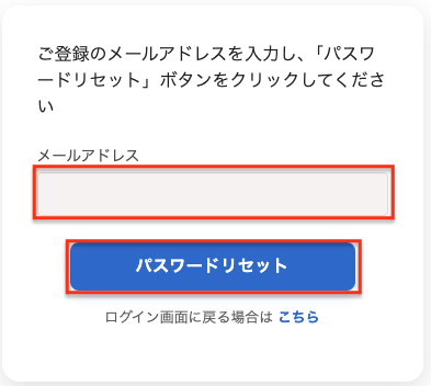 2.ご登録のメールアドレスを入力して、「パスワードリセット」ボタンをクリックします。