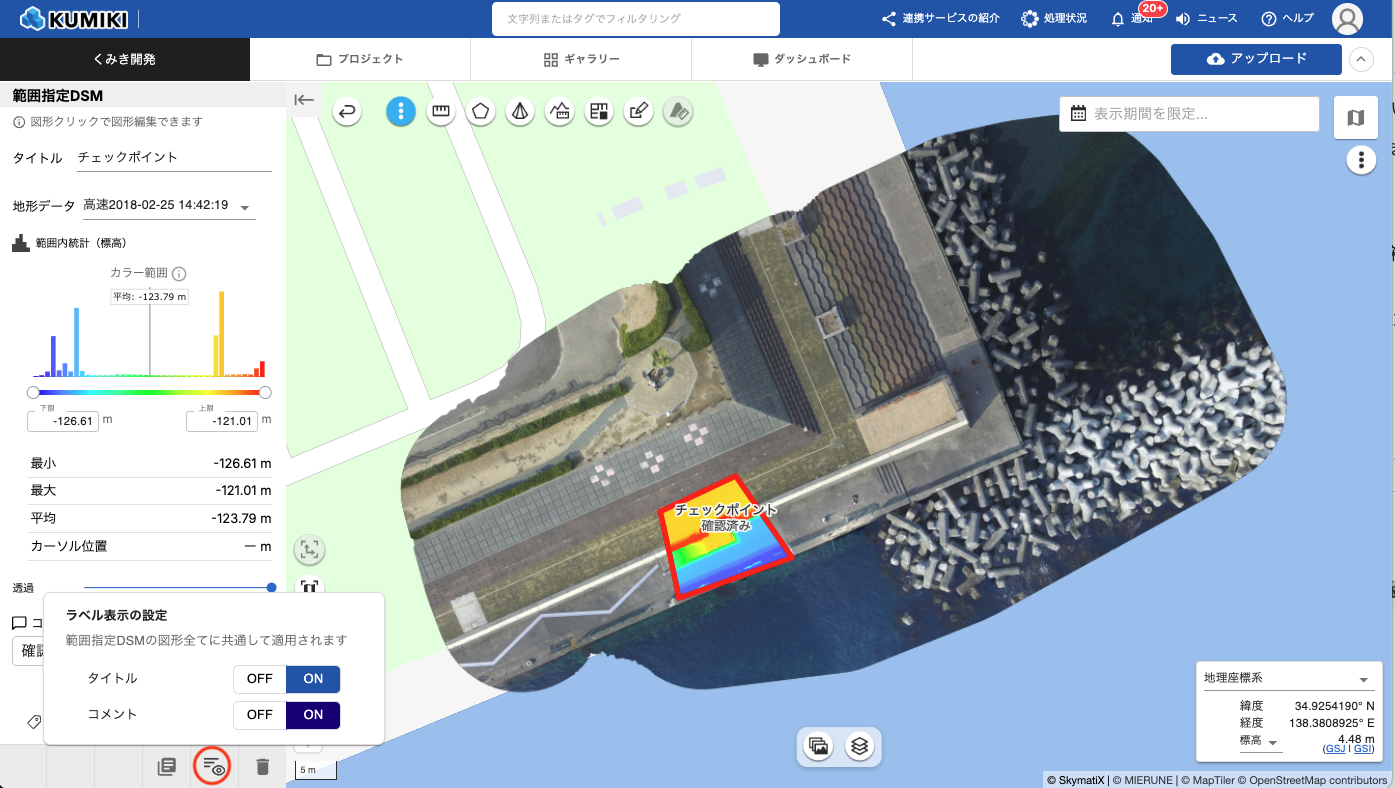 - コメント:範囲指定DSMのコメントを地図上に表示するかどうか