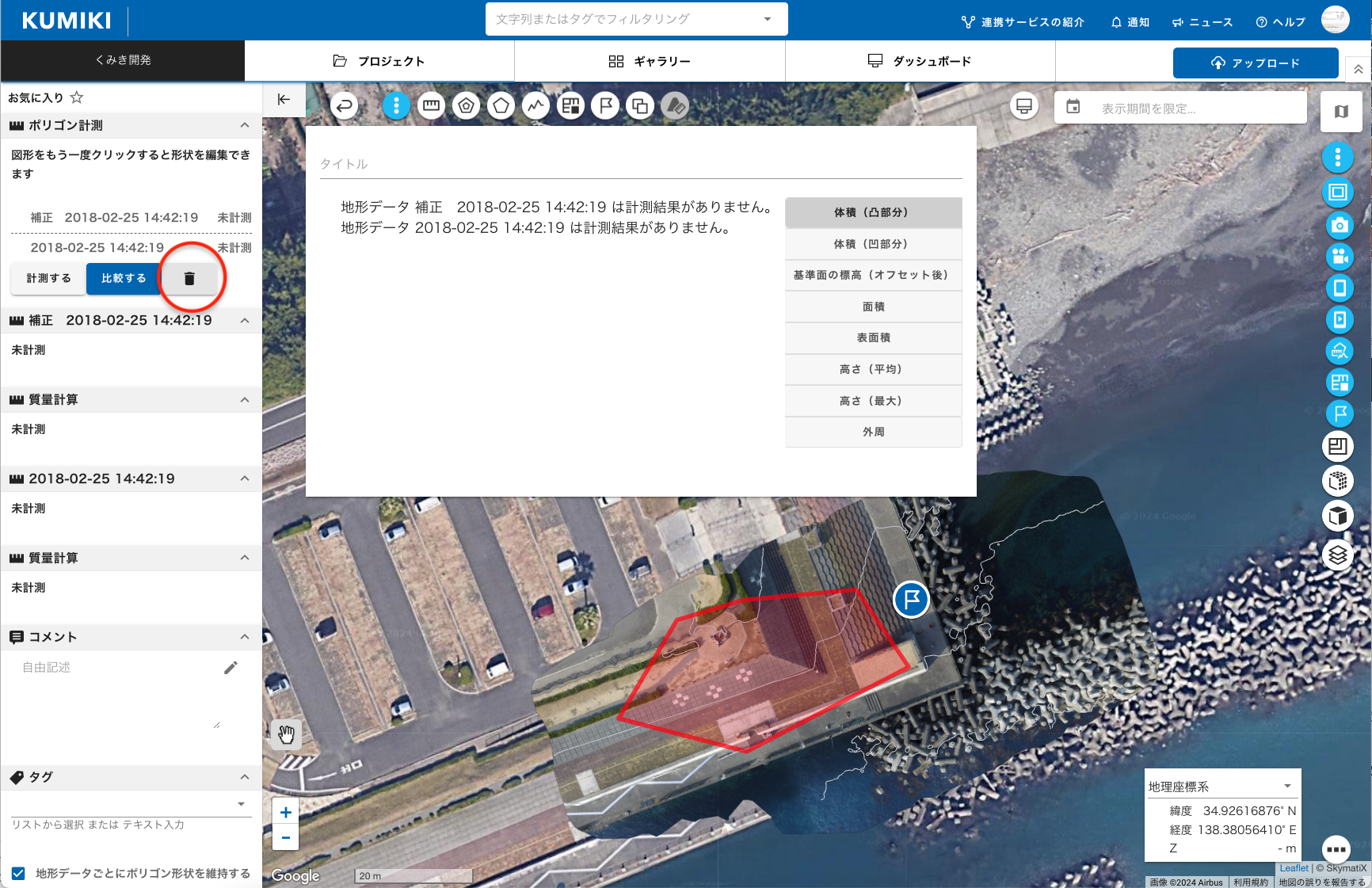 8.計測結果の削除は左パネルゴミ箱ボタンをクリックします。