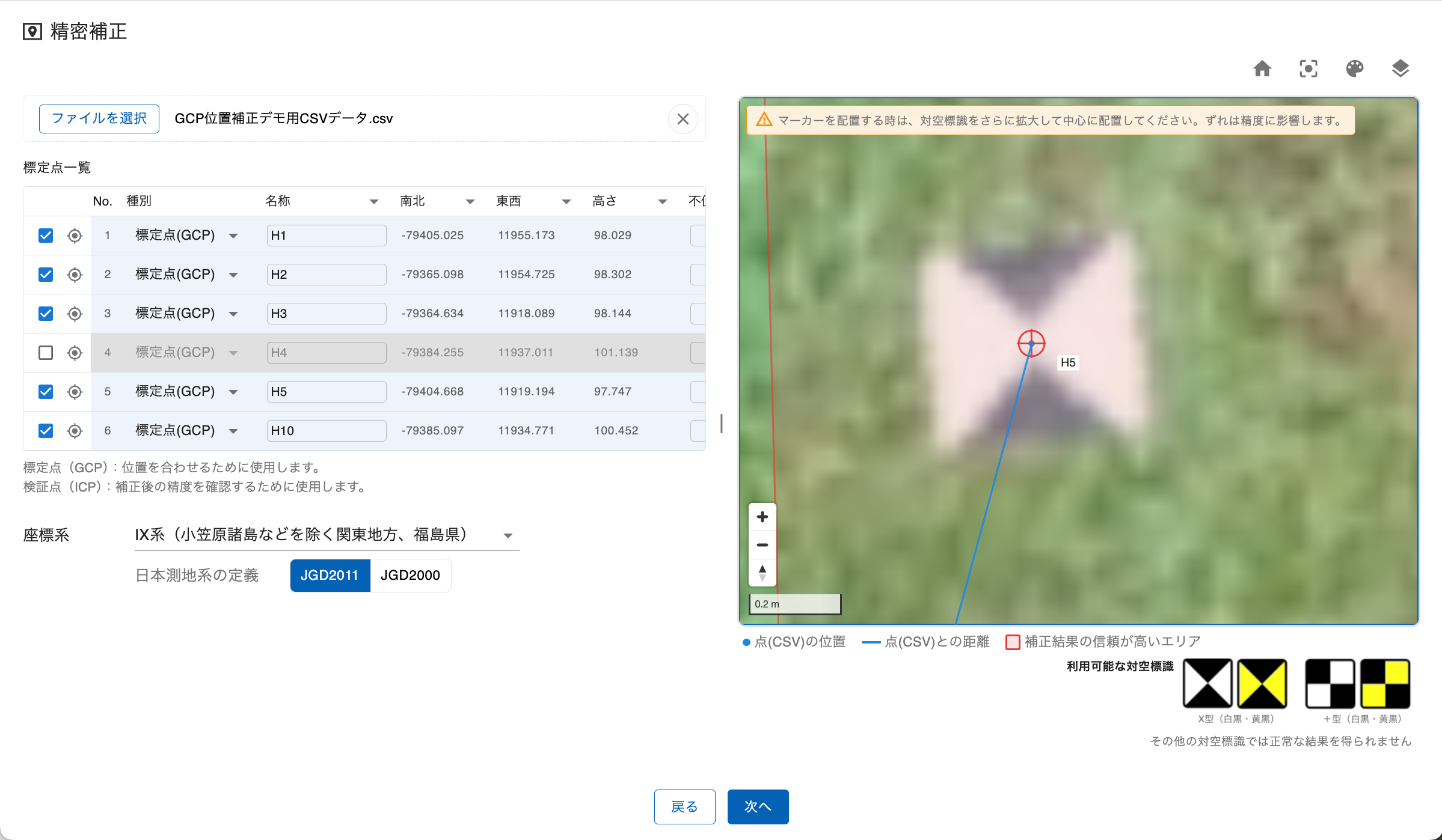 - 調整が必要な場合は「戻る」ボタンをクリックして、前の画面でマーカー位置を修正してください。