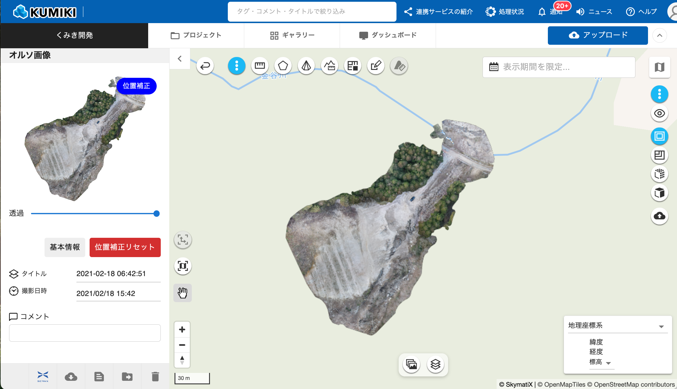 - 通知を受け取ったら、プロジェクト詳細画面で補正後のオルソ画像を確認してください。