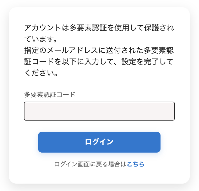 5. 次回ログインから多要素認証コードが必要となります。