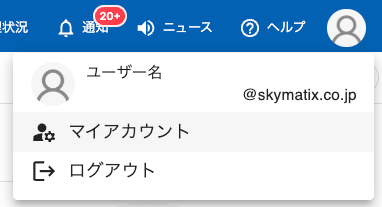 - トップ画面の右上アイコンをクリックし、「マイアカウント」をクリックします。