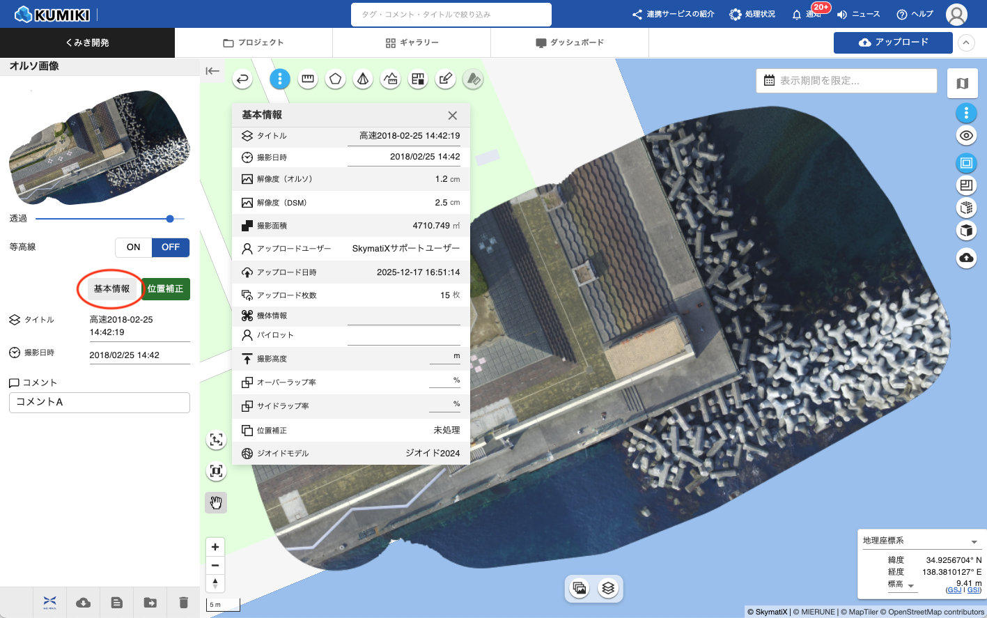 - 機体情報:撮影に使用したドローンの機体情報を編集できます。